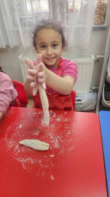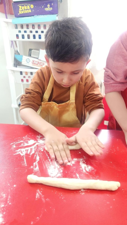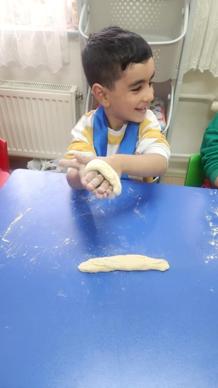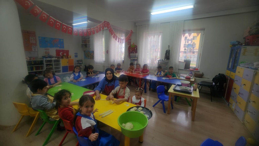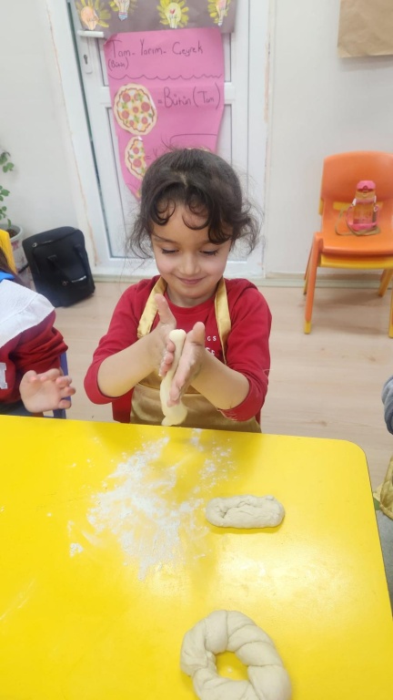 Aile katılımı etkinliği olarak beş yaş sınıfı simit yapımı etkinliği gerçekleştirdi. Etkinlik bitiminde çocuklar hep birlikte afiyetle simitlerini yediler.